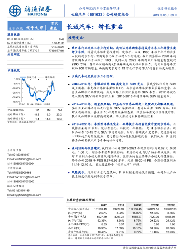 【海通证券】【20190509】长城汽车:增长重启-26页 行业研究