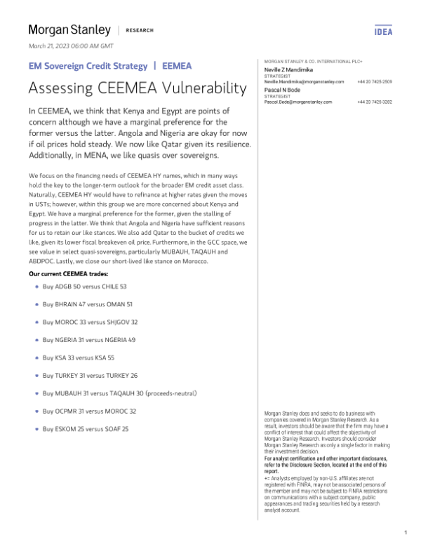 【Morgan Stanley】【20230321】EM Sovereign Credit Strategy | Assessing CEEMEA Vulnerability-13页 行业研究