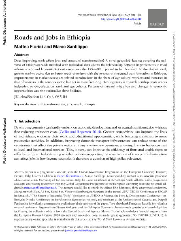 【The World Bank】【2022】Roads and Jobs in Ethiopia-22页 学术论文