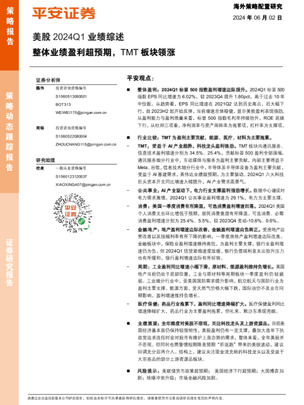 【平安证券】【20240602】美股2024Q1业绩综述:整体业绩盈利超预期,TMT板块领涨-11页 行业研究