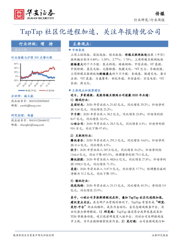 【华安证券】【20210329】20210329-华安证券-传媒行业周报:TapTap社区化进程加速,关注年报绩优公司-19页 行业研究