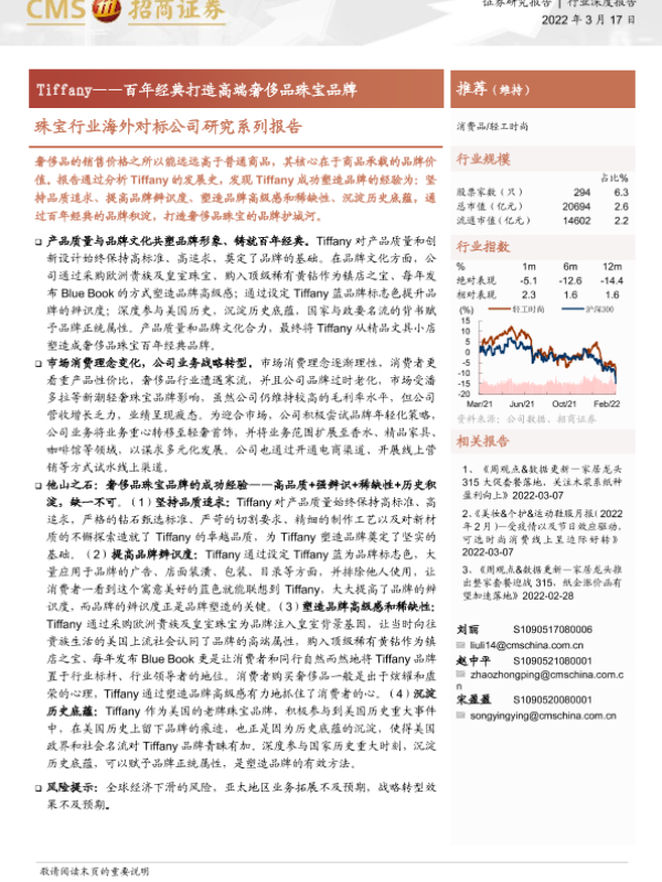 【海通证券】【20220317】珠宝行业海外对标公司研究系列报告:Tiffany,百年经典打造高端奢侈品珠宝品牌-15页 行业研究