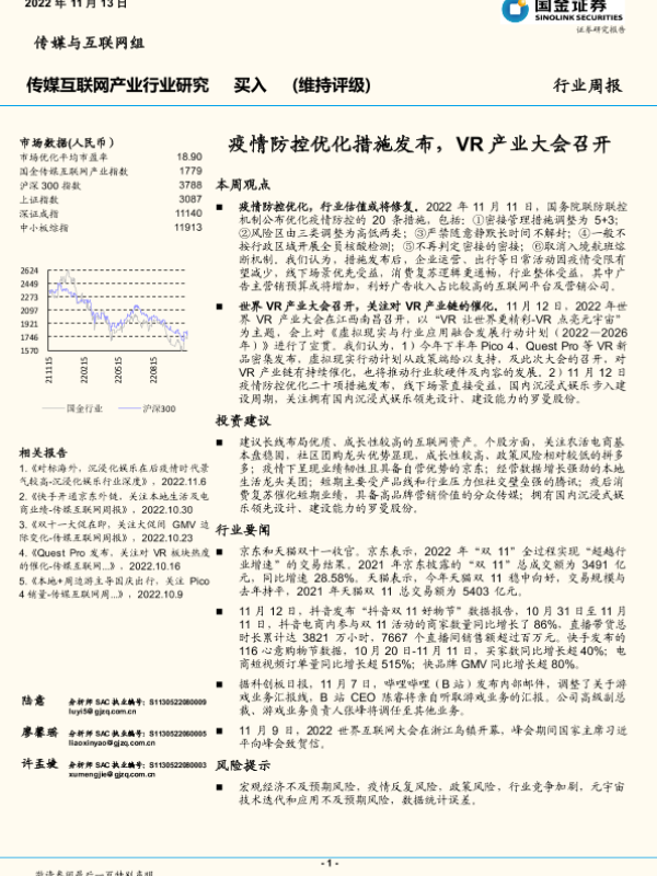 【国金证券】【20221113】传媒互联网产业行业研究:疫情防控优化措施发布,VR产业大会召开-21页 行业研究