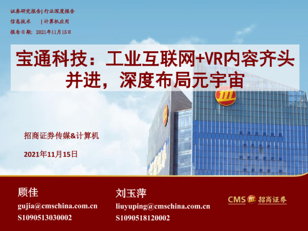 【海通证券】【20211115】宝通科技:工业互联网+VR内容齐头并进,深度布局元宇宙-41页 证券期货研究报告