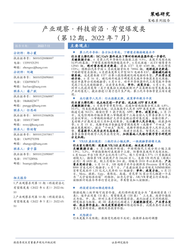 【华安证券】【20220711】产业观察·科技前沿·有望爆发类(第12期,2022年7月)-26页 行业研究