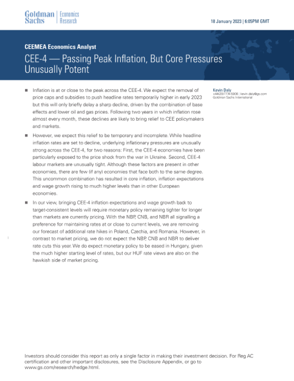 【Goldman Sachs】【20230118】CEE-4 — Passing Peak Inflation, But Core Pressures Unusually Potent-14页 行业研究