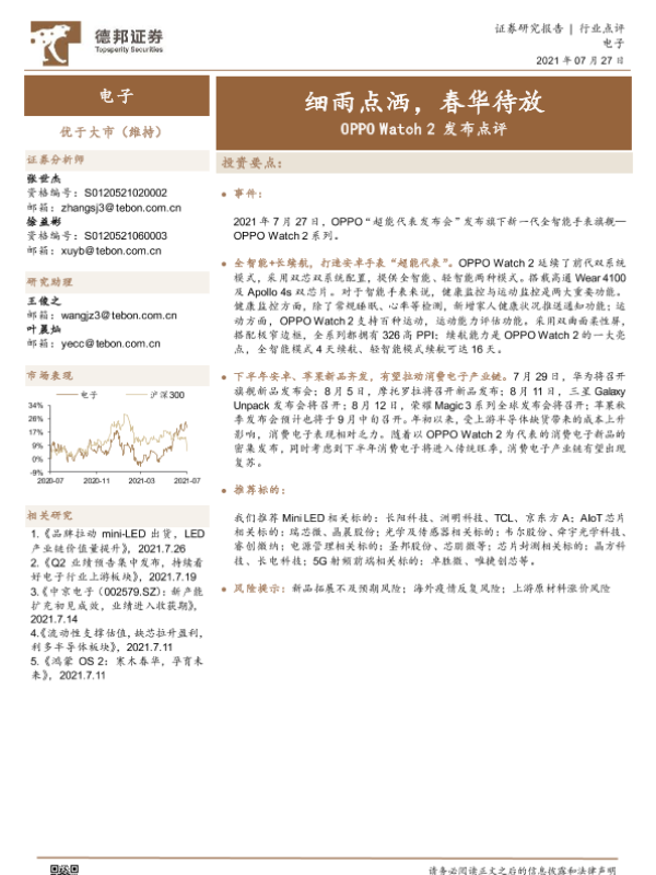 【德邦证券】【20210727】OPPO Watch 2发布点评-细雨点洒,春华待放-2页 行业研究