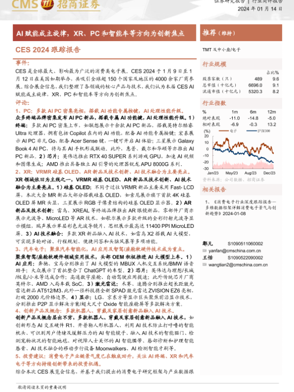 【海通证券】【20240114】电子CES 2024跟踪报告:AI赋能成主旋律,XR、PC和智能车等方向为创新焦点-45页 行业研究