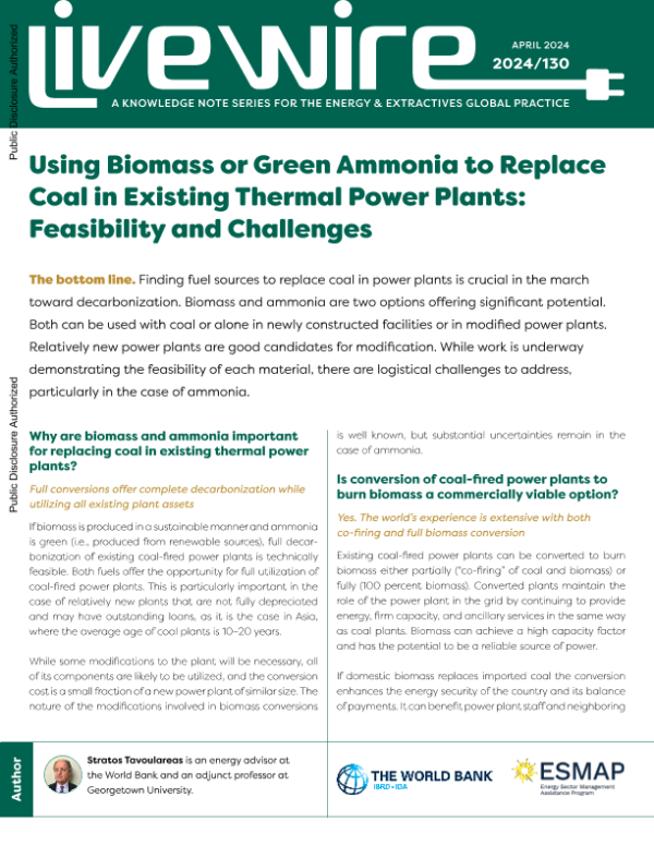 【World Bank】【2024】Using Biomass or Green Ammonia to Replace Coal in Existing Thermal Power Plants Feasibility and Challenges-9页 白皮书
