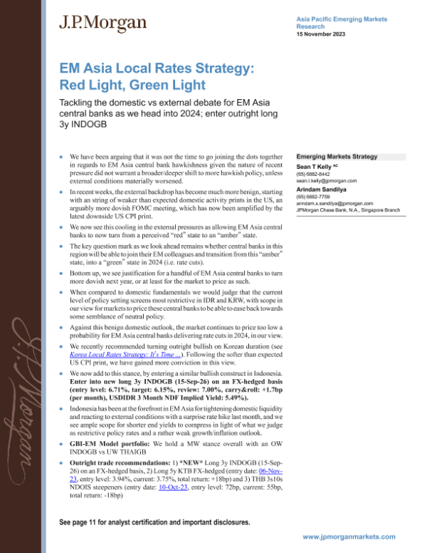 【J.P. Morgan】【20231115】FI-EM Asia Local Rates Strategy Red Light, Green Light-15页 宏观策略