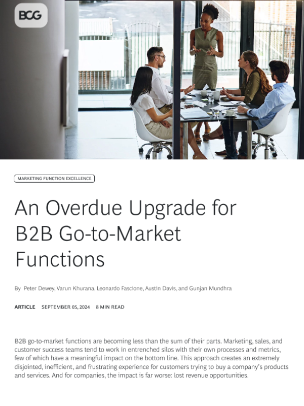 【Boston Consulting Group】【20240905】An Overdue Upgrade for B2B Go-to-Market Functions-7页 行业研究