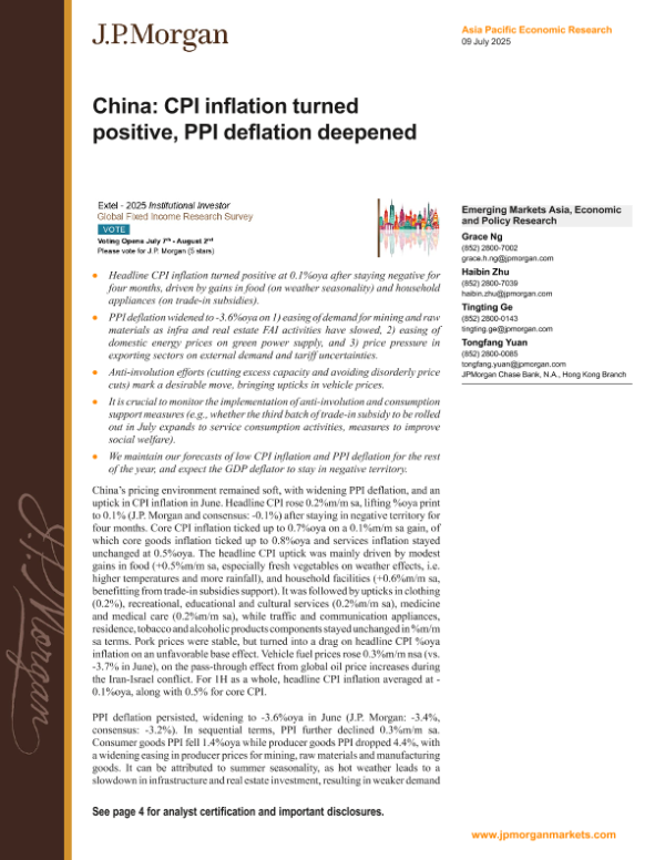 【J.P. Morgan】【20250709】China CPI inflation turned positive, PPI deflation deepened-8页 行业研究