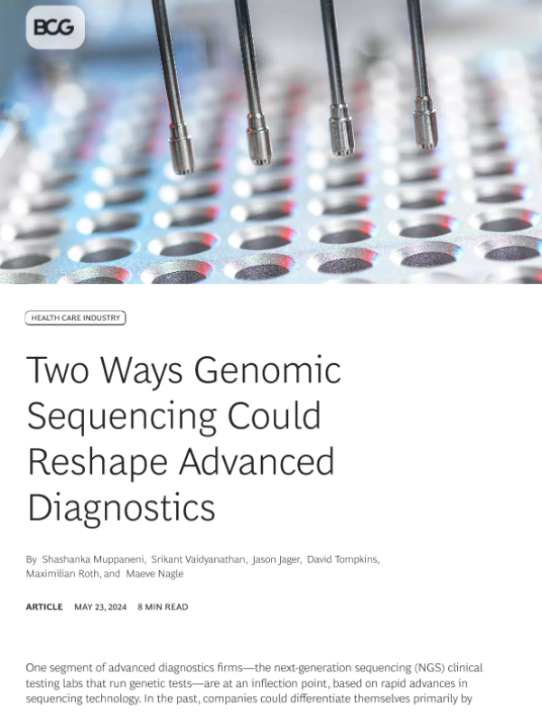 【Boston Consulting Group】【20240523】Two Ways Genomic Sequencing Could Reshape Advanced Diagnostics-10页 行业研究