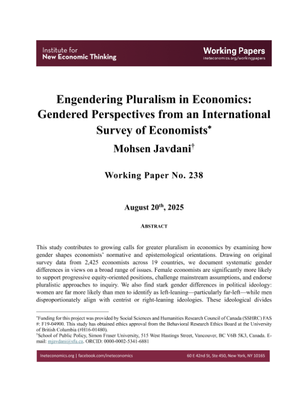【Mohsen Javdani*】【2025】Engendering Pluralism in Economics Gendered Perspectives from an International Survey of Economists-32页 学术论文