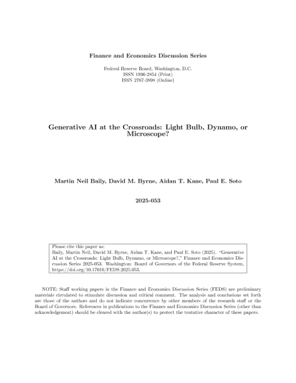 【Board of Governors of the Federal Reserve System】【2025】Generative AI at the Crossroads Light Bulb, Dynamo, or Microscope?-83页 学术论文