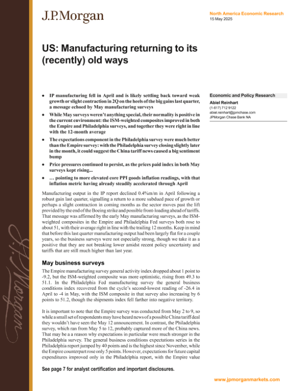 【J.P. Morgan】【20250515】US Manufacturing returning to its (recently) old ways-10页 宏观策略