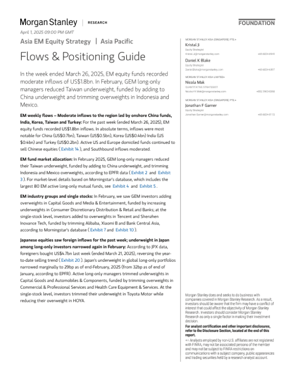 【Morgan Stanley】【202503】Asia EM Equity Strategy Flows & Positioning Guide-24页 证券期货研究报告