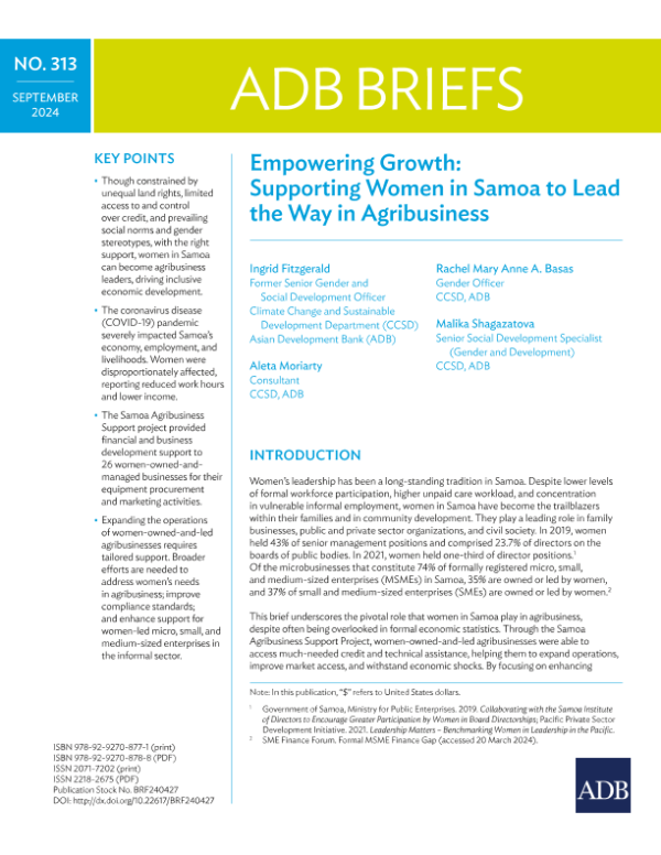 【Asian Development Bank (ADB)】【2024】Empowering Growth Supporting Women in Samoa to Lead the Way in Agribusiness-8页 行业研究