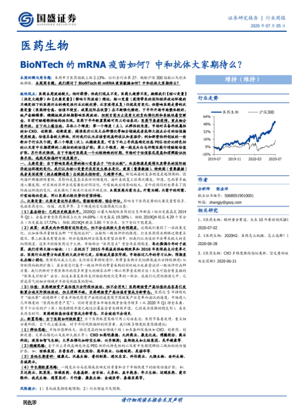 【国盛证券】【20200705】医药生物行业周报:BioNTech的mRNA疫苗如何?中和抗体大家期待么?-25页 行业研究