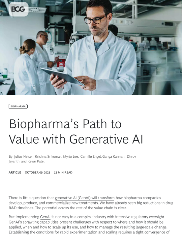 【Boston Consulting Group】【20231009】Biopharma’s Path to Value with Generative AI-12页 行业研究