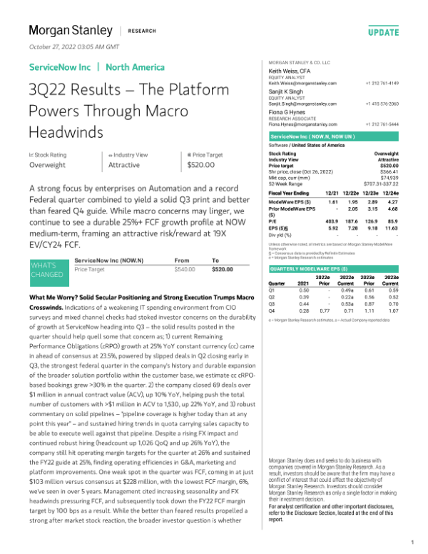【Morgan Stanley】【20221027】nley-ServiceNow Inc 3Q22 Results – The Platform Powers Through Macro-17页 行业研究