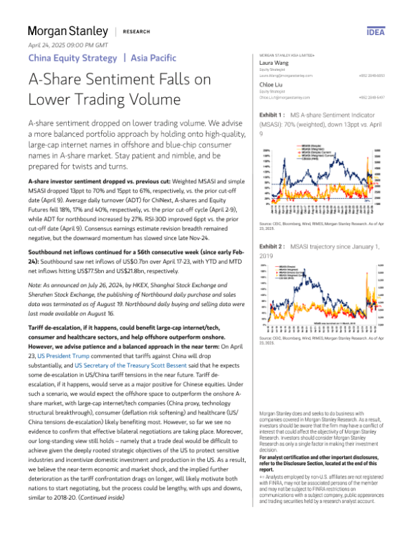 【Morgan Stanley】【20250423】A-Share Sentiment Falls on Lower Trading Volume-11页 宏观策略