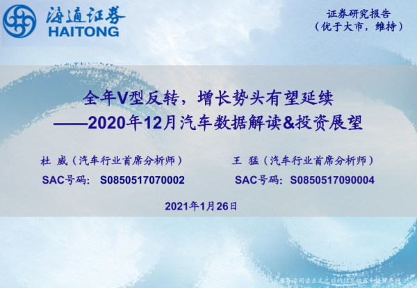 【海通证券】【20210126】2020年12月汽车数据解读&投资展望:全年V型反转,增长势头有望延续-23页 行业研究