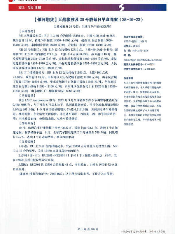 【银河期货】【202510】天然橡胶及20号胶每日早盘观察-176页 证券期货研究报告