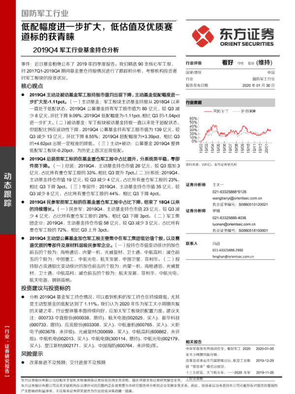 【东方证券】【20200130】2019Q4军工行业基金持仓分析:低配幅度进一步扩大,低估值及优质赛道标的获青睐-10页 行业研究