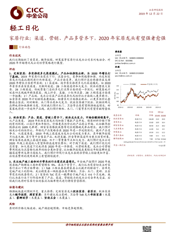 【中金公司】【20191222】家居行业:渠道、营销、产品多管齐下,2020年家居龙头有望强者愈强-8页 行业研究