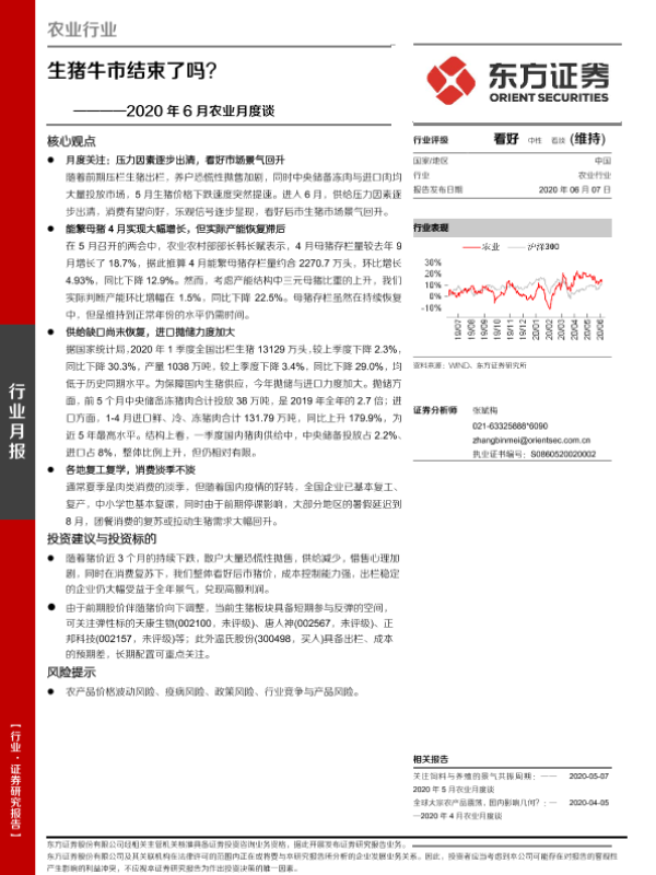 【东方证券】【20200607】2020年6月农业月度谈:生猪牛市结束了吗?-28页 行业研究