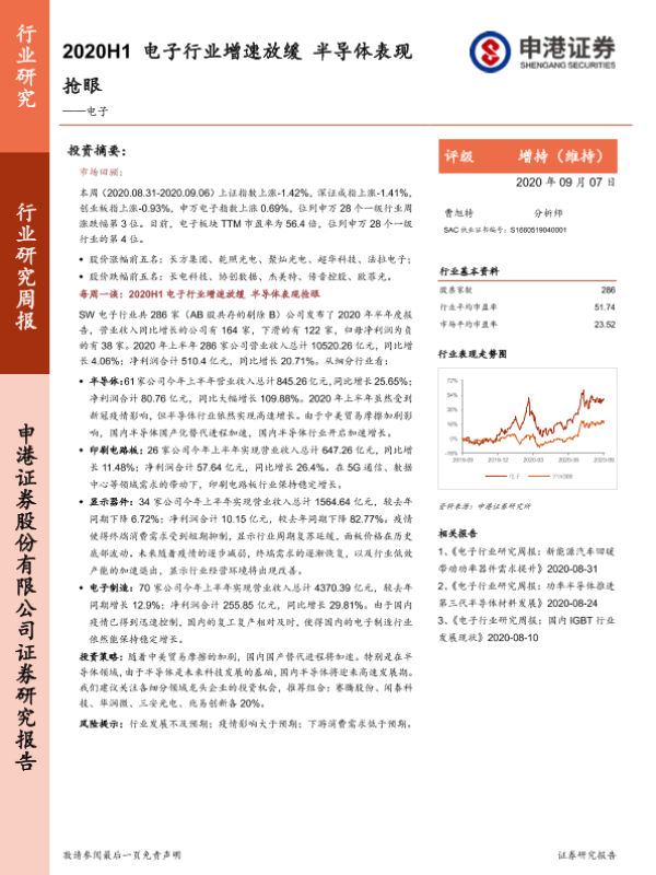 【申港证券】【20200907】2020H1电子行业增速放缓 半导体表现抢眼-14页 行业研究