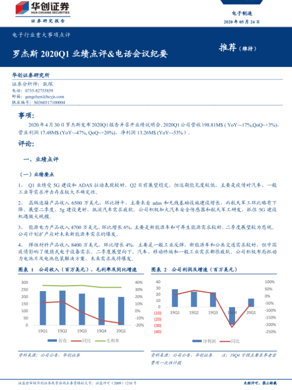 【华创证券】【20200524】电子行业重大事项点评:罗杰斯2020Q1业绩点评&电话会议纪要-12页 行业研究