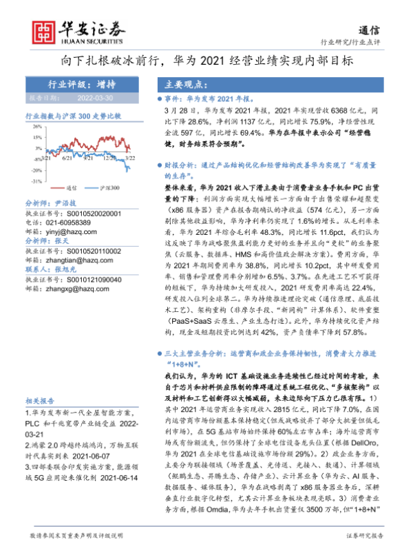 【华安证券】【20220330】向下扎根破冰前行,华为2021经营业绩实现内部目标-5页 行业研究