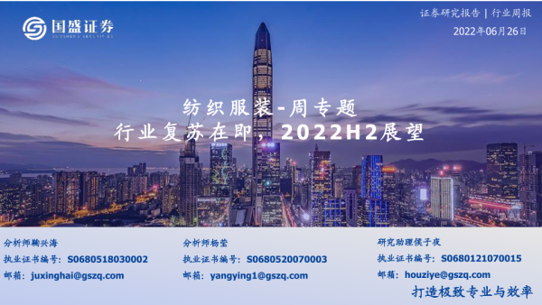 【国盛证券】【20220626】纺织服装-周专题:行业复苏在即,2022H2展望-15页 行业研究