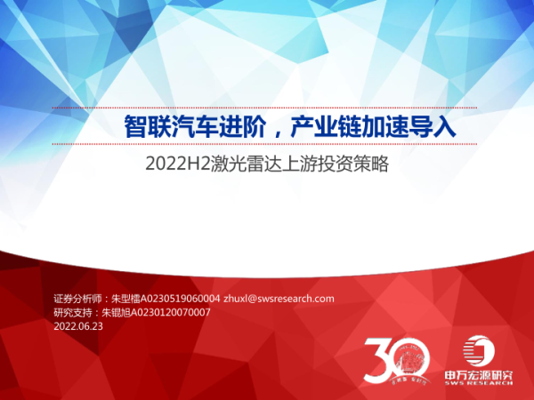 【申万宏源】【20220623】2022H2激光雷达行业上游投资策略:智联汽车进阶,产业链加速导入-27页 行业研究