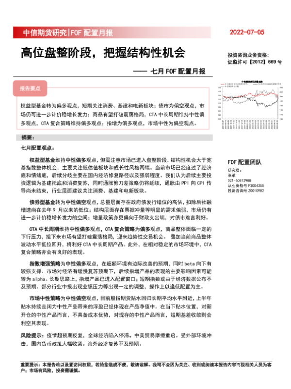 【中信期货】【20220705】七月FOF配置月报:高位盘整阶段,把握结构性机会-25页 行业研究