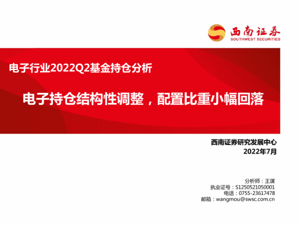 【西南证券】【202207】电子行业2022Q2基金持仓分析:电子持仓结构性调整,配置比重小幅回落-18页 行业研究