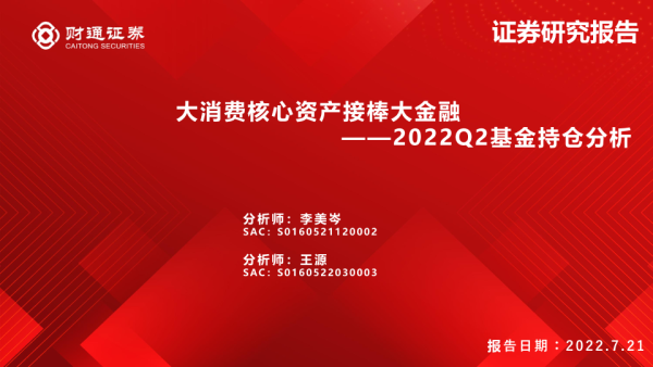 【财通证券】【20220721】2022Q2基金持仓分析:大消费核心资产接棒大金融-31页 行业研究