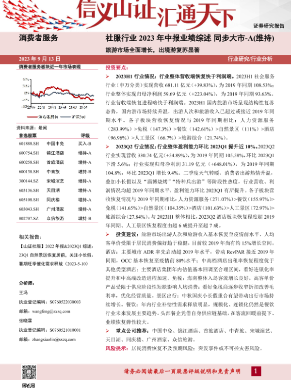【山西证券】【20230913】社服行业2023年中报业绩综述:旅游市场全面增长,出境游复苏显著-30页 行业研究