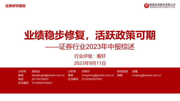 【浙商证券】【20230911】证券行业2023年中报综述:业绩稳步修复,活跃政策可期-27页 行业研究
