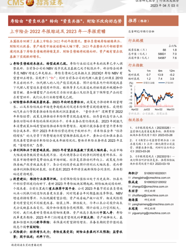 【海通证券】【20230403】上市险企2022年报综述及2023年一季报前瞻-寿险由“资负双杀”转向“资负共振”,财险不改向好态势-19页 行业研究