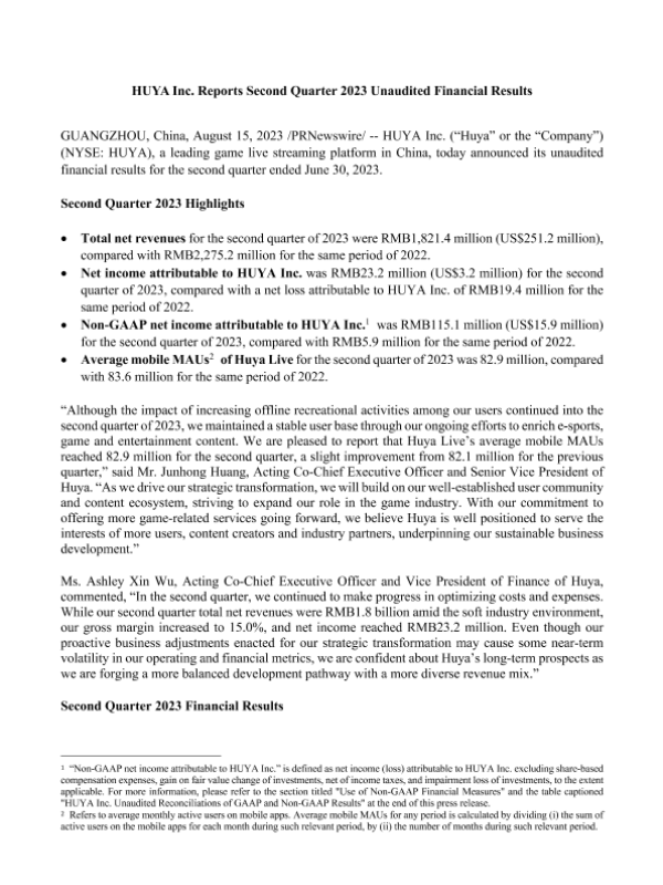 【HUYA Inc.】【20230815】HUYA Inc. Reports Second Quarter 2023 Unaudited Financial Results-11页 财报