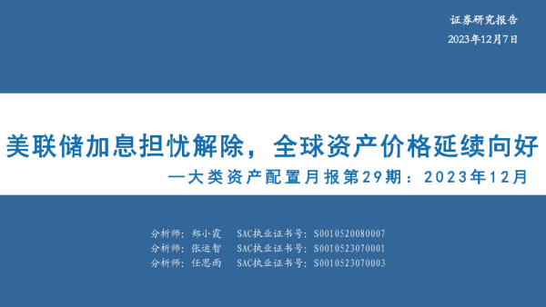 【华安证券】【20231207】大类资产配置月报第29期:2023年12月:美联储加息担忧解除,全球资产价格延续向好-32页 行业研究