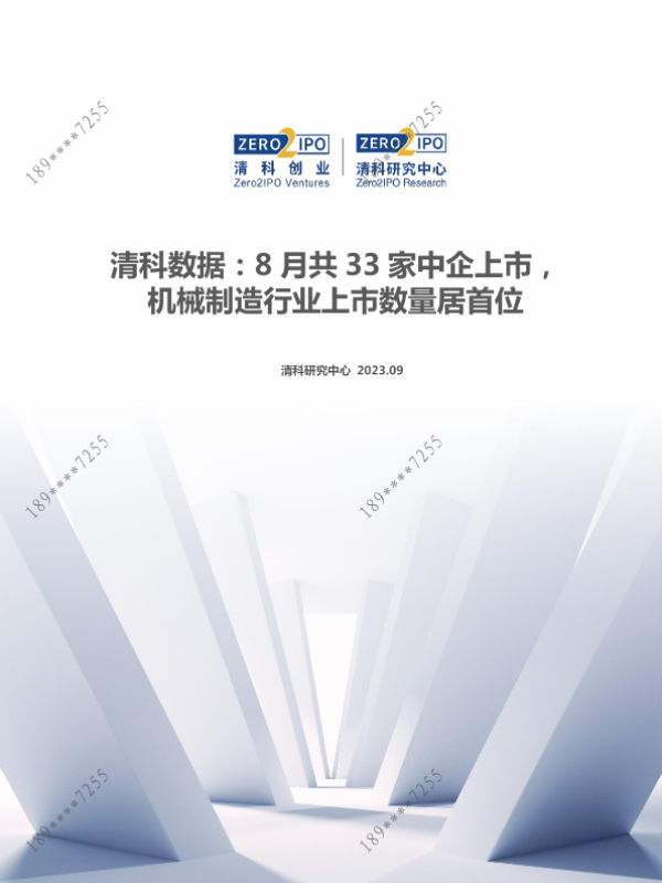 【清科研究中心】【202309】清科数据:8月共33家中企上市,机械制造行业上市数量居首位-13页 行业研究