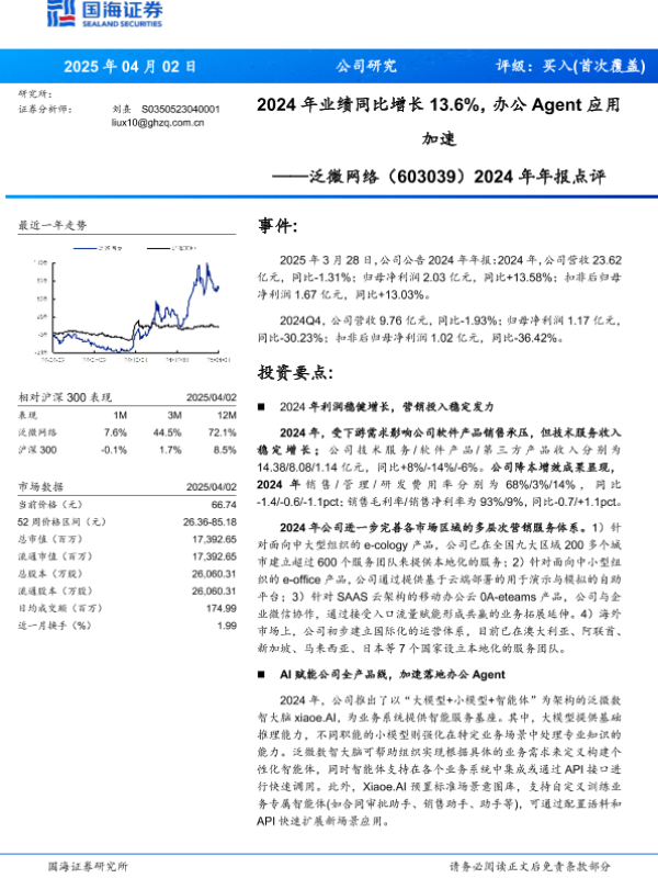 【国海证券】【20250402】2024年业绩同比增长13.6%,办公Agent应用加速-13页 公司研究