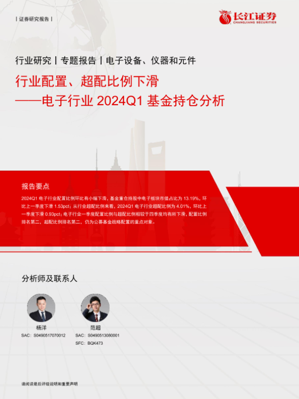 【长江证券】【20240515】电子行业2024Q1基金持仓分析:行业配置、超配比例下滑-14页 行业研究