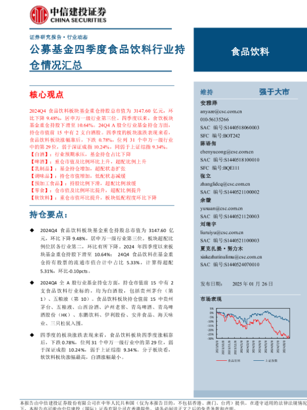 【中信建投证券】【20250126】食品饮料行业动态:公募基金四季度食品饮料行业持仓情况汇总-24页 行业研究
