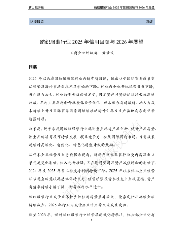 【新世纪评级】【2025】纺织服装行业2025年信用回顾与2026年展望-54页 行业研究