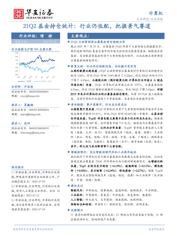 【华安证券】【20210726】20210726-华安证券-计算机行业周报:21Q2基金持仓统计:行业仍低配,把握景气赛道-15页 行业研究